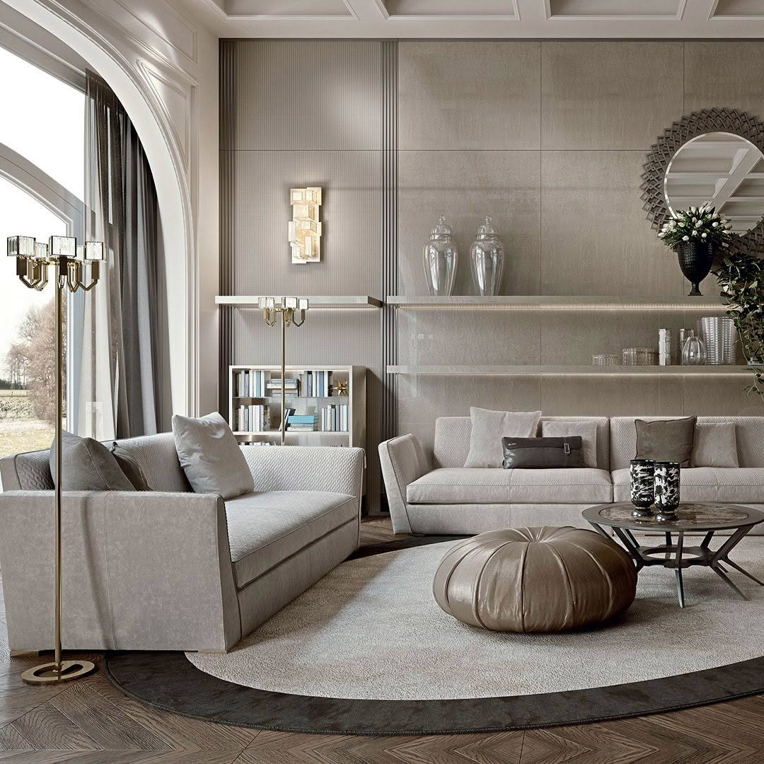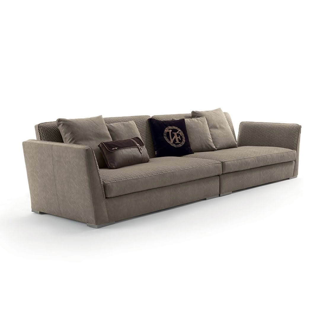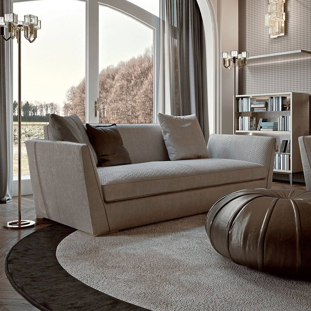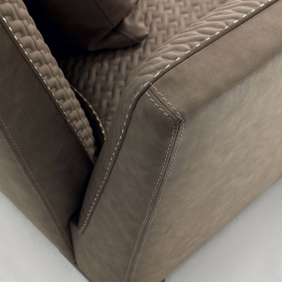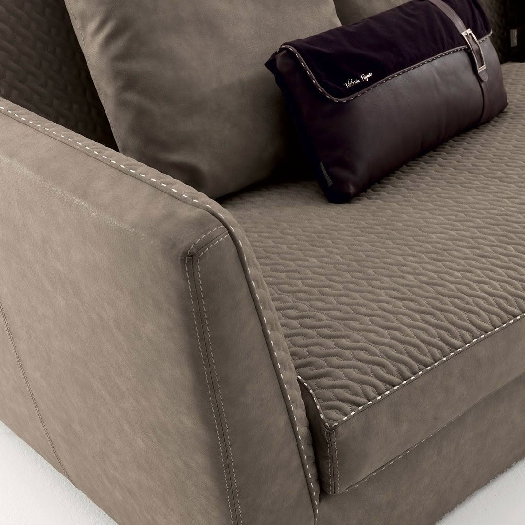 Light, welcoming and suddenly unexpected. The Visconti sofa is enriched by a quilted insert on the seat and on the inside of the padded backrests and armrests, which develop along an open diagonal for a pleasantly harmonious visual effect, a play of solids and voids due to the deliberate lack of a line. continuity between armrest and backrest. Unexpected is the solution that is articulated by developing central elements with metal armrests instead of the padded ones. The collection is divided into closed sofas, two or three seats, and central modular elements, central dormeuse, end units, corner dormeuse and chaise longue.