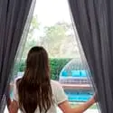For seamless indoor-outdoor living, conveniently walk through the individual fabric vanes whether they are opened or closed. Free from noisy connecting chains and bottom weights, Luxaflex® LumiShade™ operates quietly and softly settles back into position.