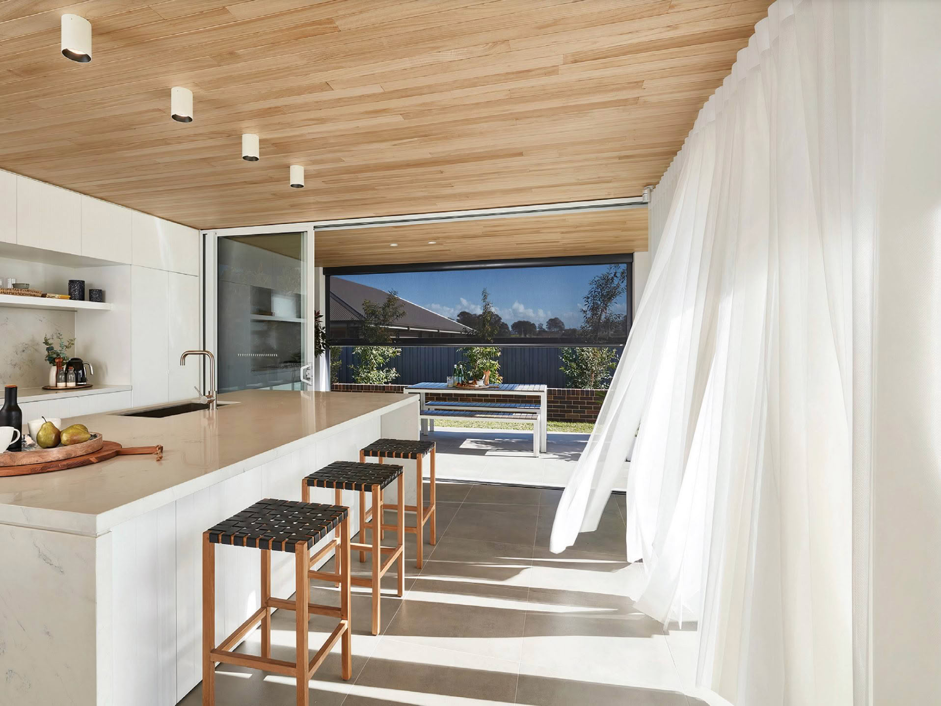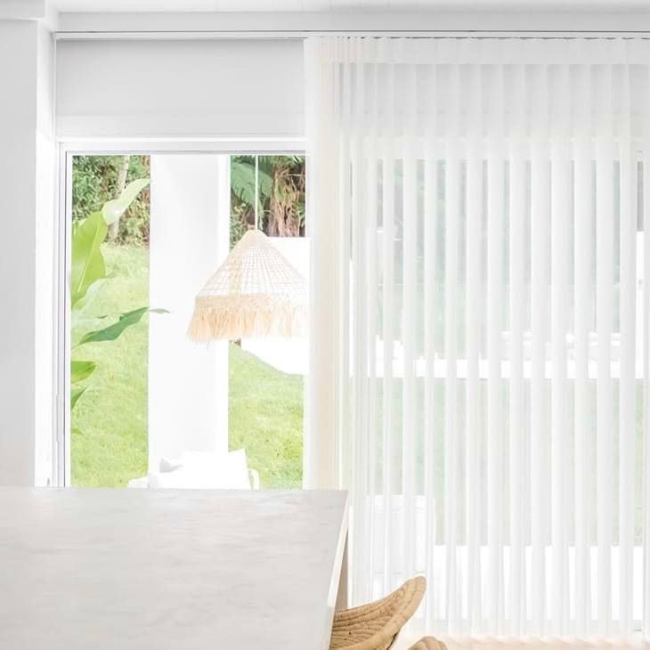 For seamless indoor-outdoor living, conveniently walk through the individual fabric vanes whether they are opened or closed. Free from noisy connecting chains and bottom weights, Luxaflex® LumiShade™ operates quietly and softly settles back into position.
