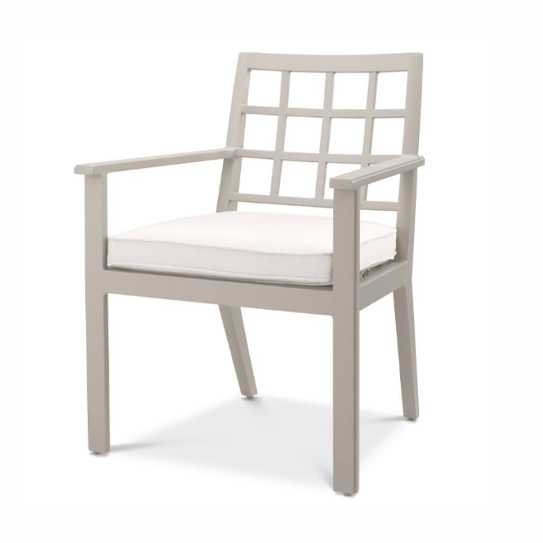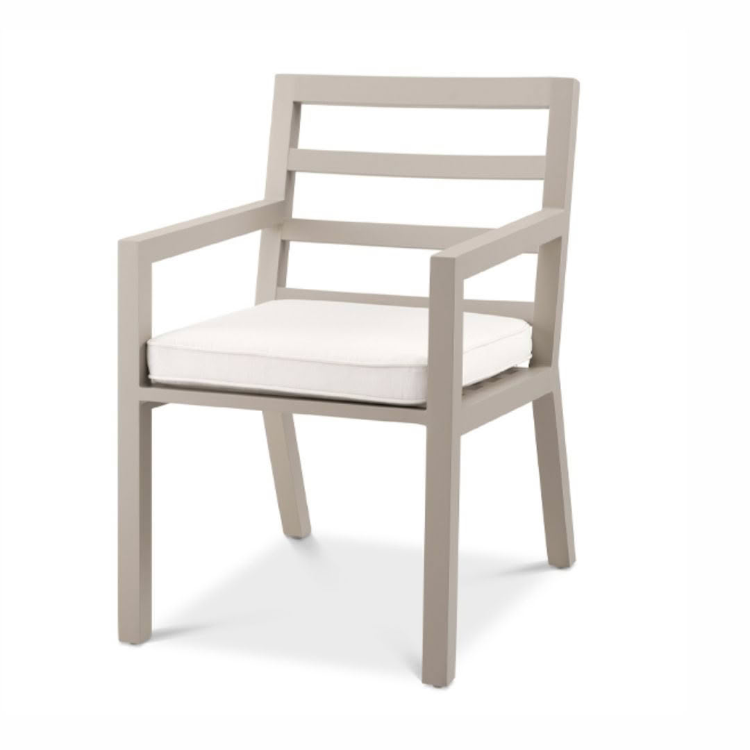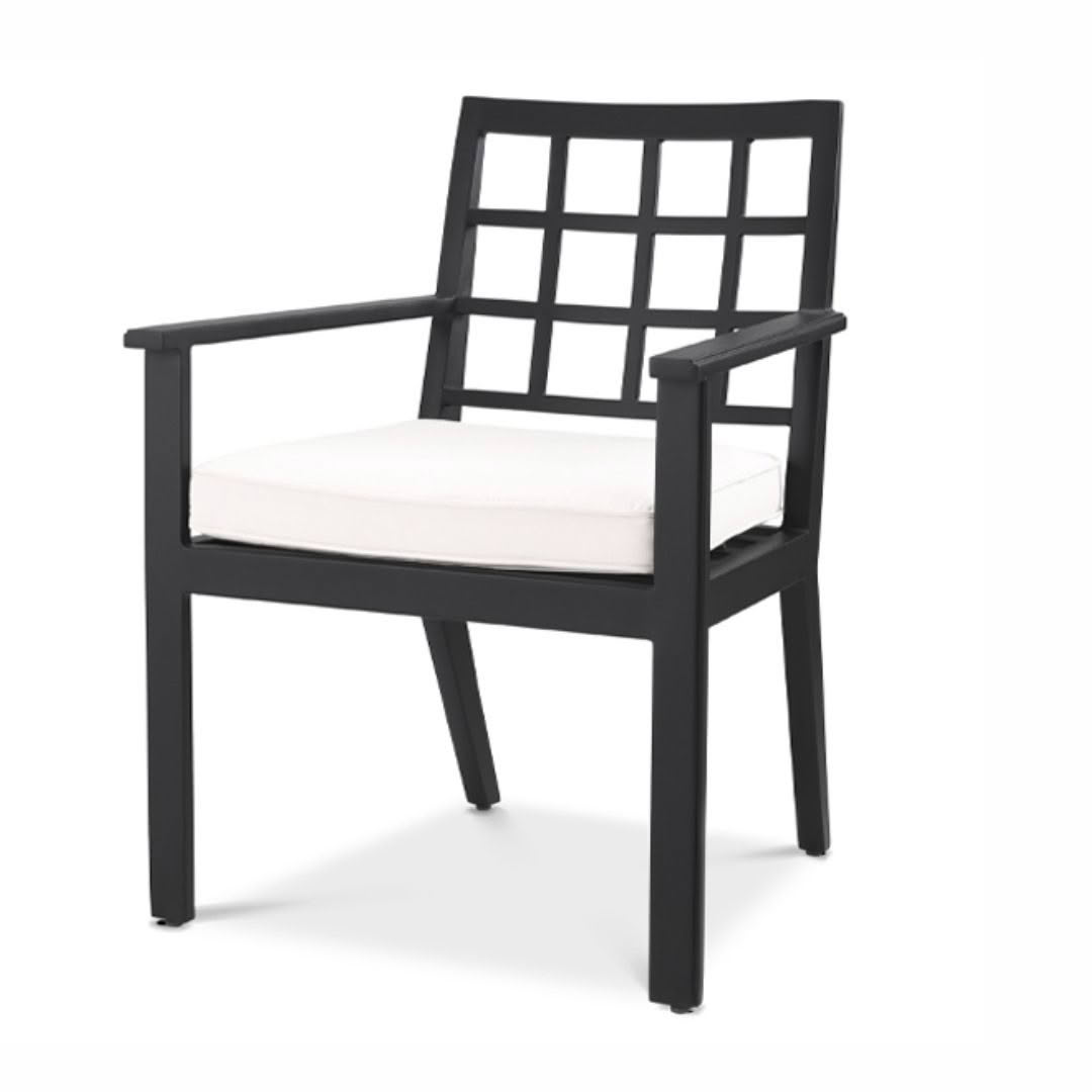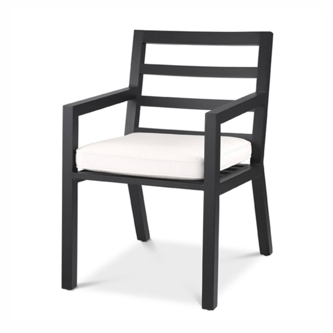 Modern gray armchair with white cushionsModern white cushioned outdoor chair with grey frame