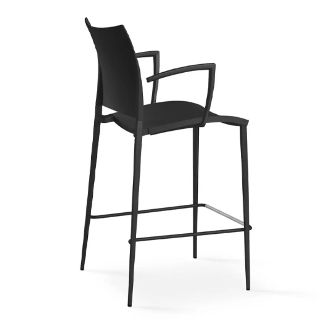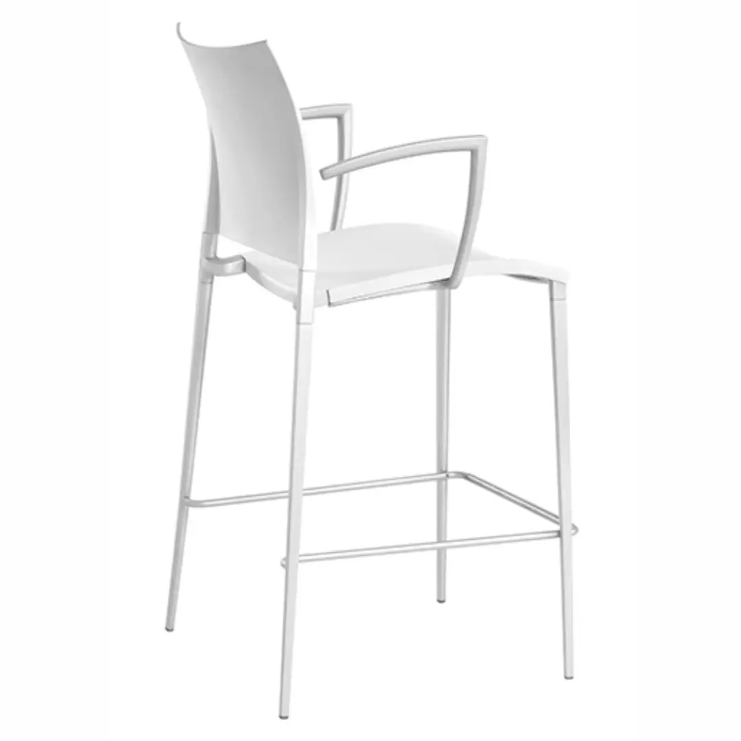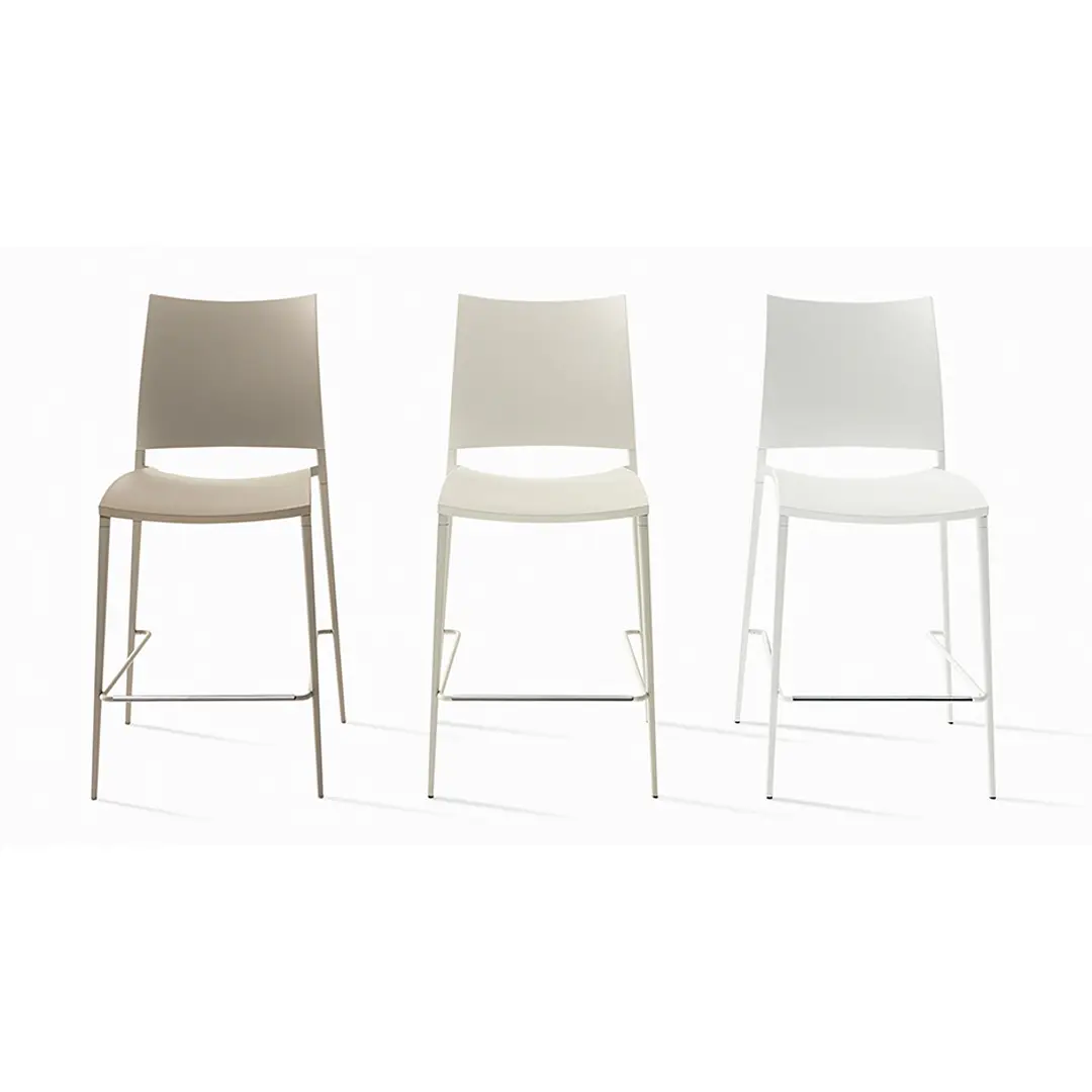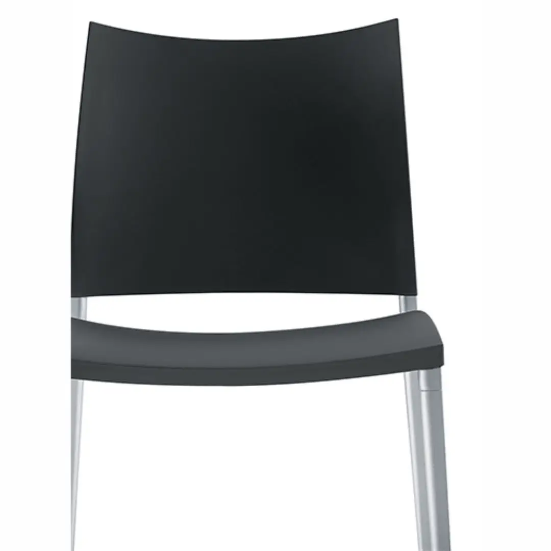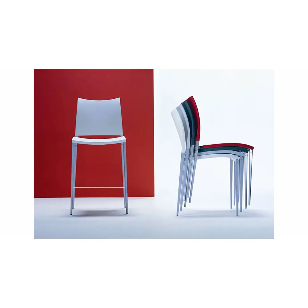 Coexisting in the Sand project are characteristics that are hard to combine in a single chair: refined aesthetics, great comfort, lightness and sturdiness. In the precious leather or hide covered versions, advanced production technology is perfectly blended with the inimitable skilled man labour. Light, stackable, available in outdoor version: besides being ideal for domestic use, Sand is also perfect for public settings. Stacking chair with or without armrests, die-cast aluminium frame. Fibreglass reinforced polypropylene seat and back in the colours: white, medium grey, anthracite, red, bulgarian red, turtle-dove, sand. Lacquered frame in the same colour as seat and back, lacquered arctic grey or in the finishes polished aluminium, lithium, matt ossidiana and polished ossidiana. Lacquered versions with polypropylene seat and back also for outdoor use. Also available with leather, eco-leather, cow-hide, cuoietto or fabric cover. Spacer for linking in transparent polycarbonate. Stool (not stackable) has the same characteristics of the chair.