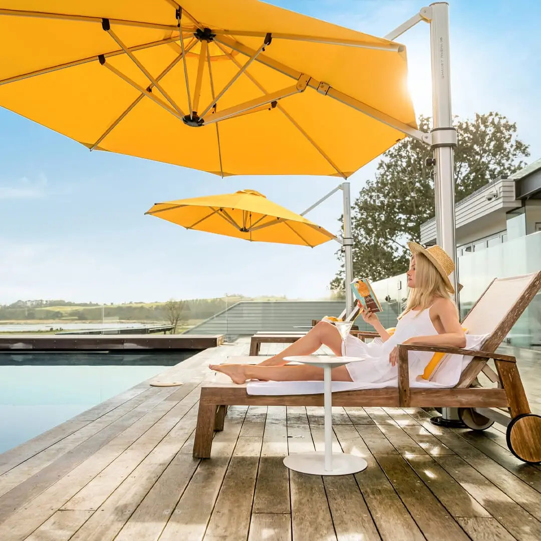 The Riviera cantilever umbrella is designed and engineered by kiwis for New Zealand’s harsh coastal environments and conditions. We began designing and manufacturing premium quality cantilever umbrellas in Auckland NZ in 1999 and over the last 25+ years we have continued to develop, design and innovate with the goal of creating NZ’s best cantilever umbrella.