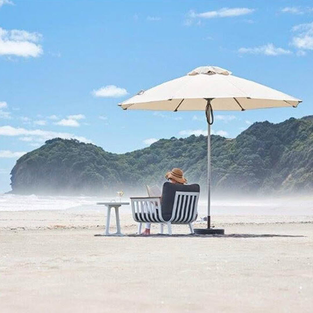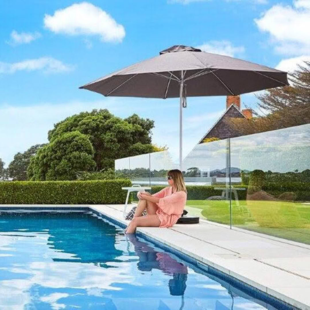 What sets the Venice umbrella apart is the uniquely designed heavy duty 12mm fibreglass canopy arms. These fibreglass arms can bend and flex making the umbrella super durable and able to withstand wind and rough treatment. This sun umbrella also features strong resin and stainless steel parts and an easy to use rope and pulley system for opening and closing.