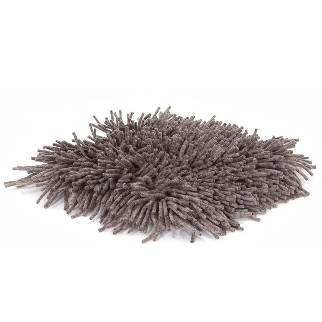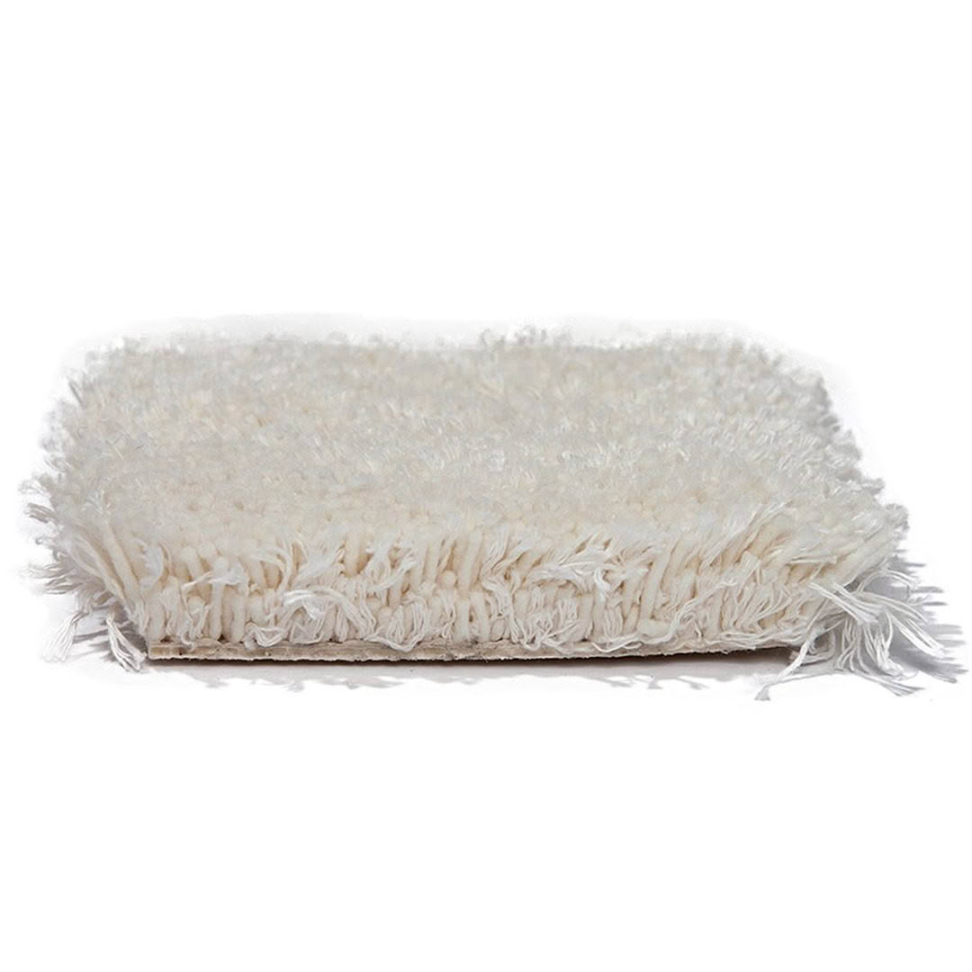 Close-up of textured white shag rug