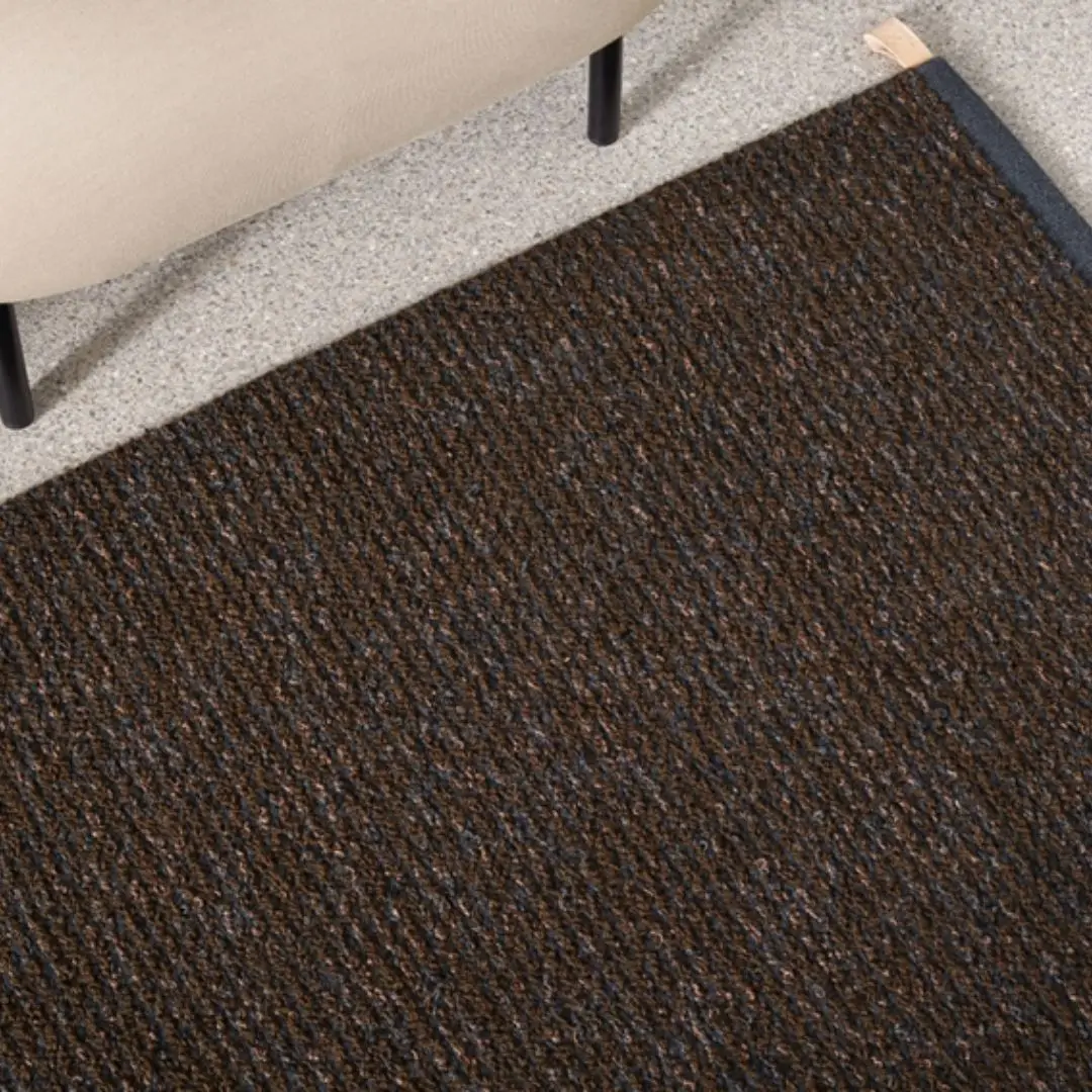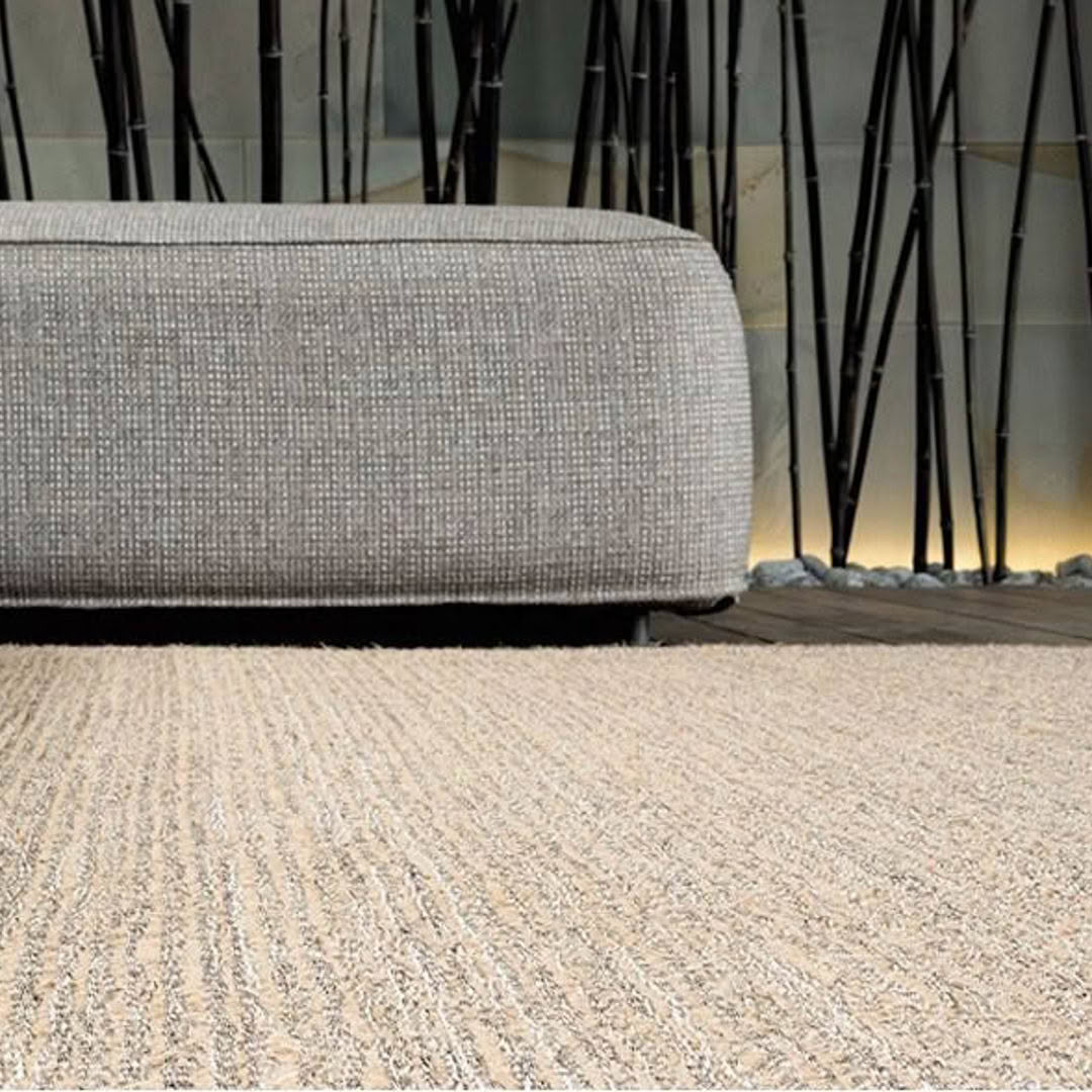 Modern room with textured rug and elegant interior designClose-up of beige textured carpet sample