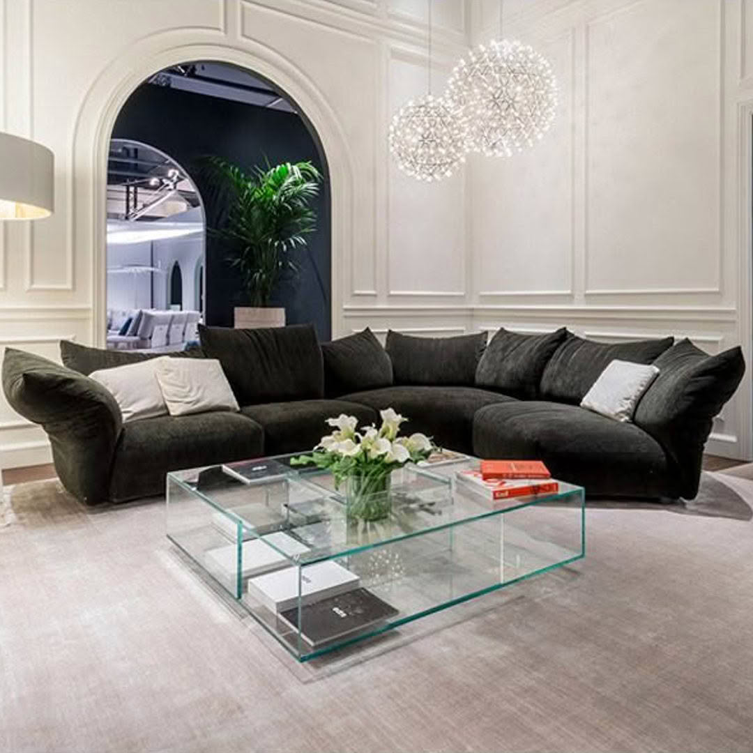 Elegant lounge with modern lighting and stylish furniture