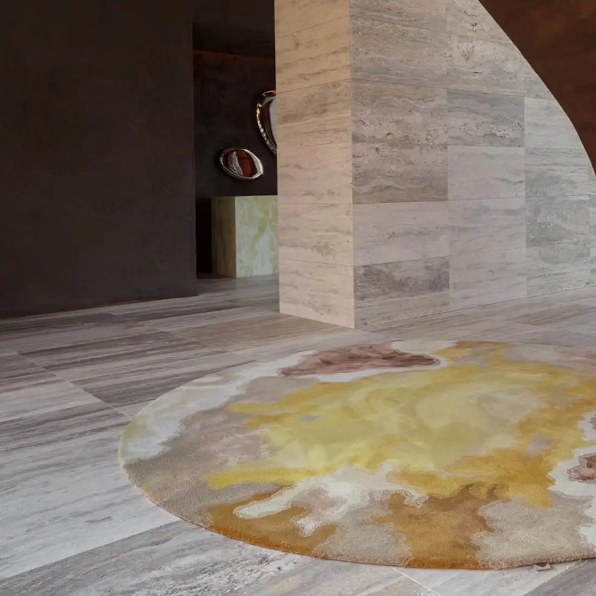 Tufted from wool and Tencel, Odyssey is a strong rug that’s ideal for commercial projects. It is available in three color palettes and two shapes: a circle and a rectangle. Dimensions can be personalized.