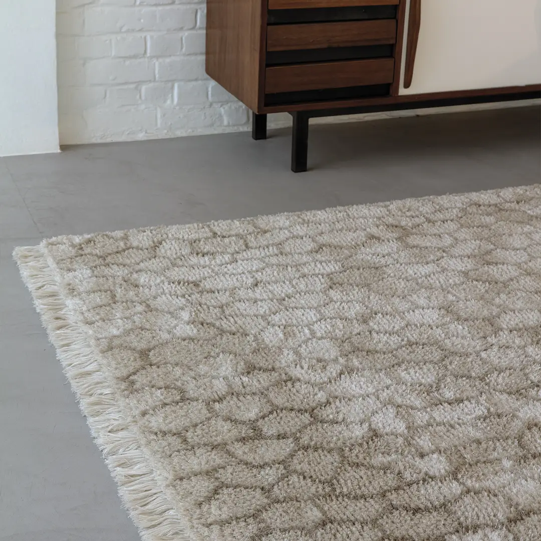 Cosmic Mongolia is the result of a fruitful collaboration with the reputed Dutch interior designer Clairz Interior, who got her inspiration for this unique collection from her many travels. This reflects in the sand structures and the depiction of reed and rattan in Cosmic Mongolia.