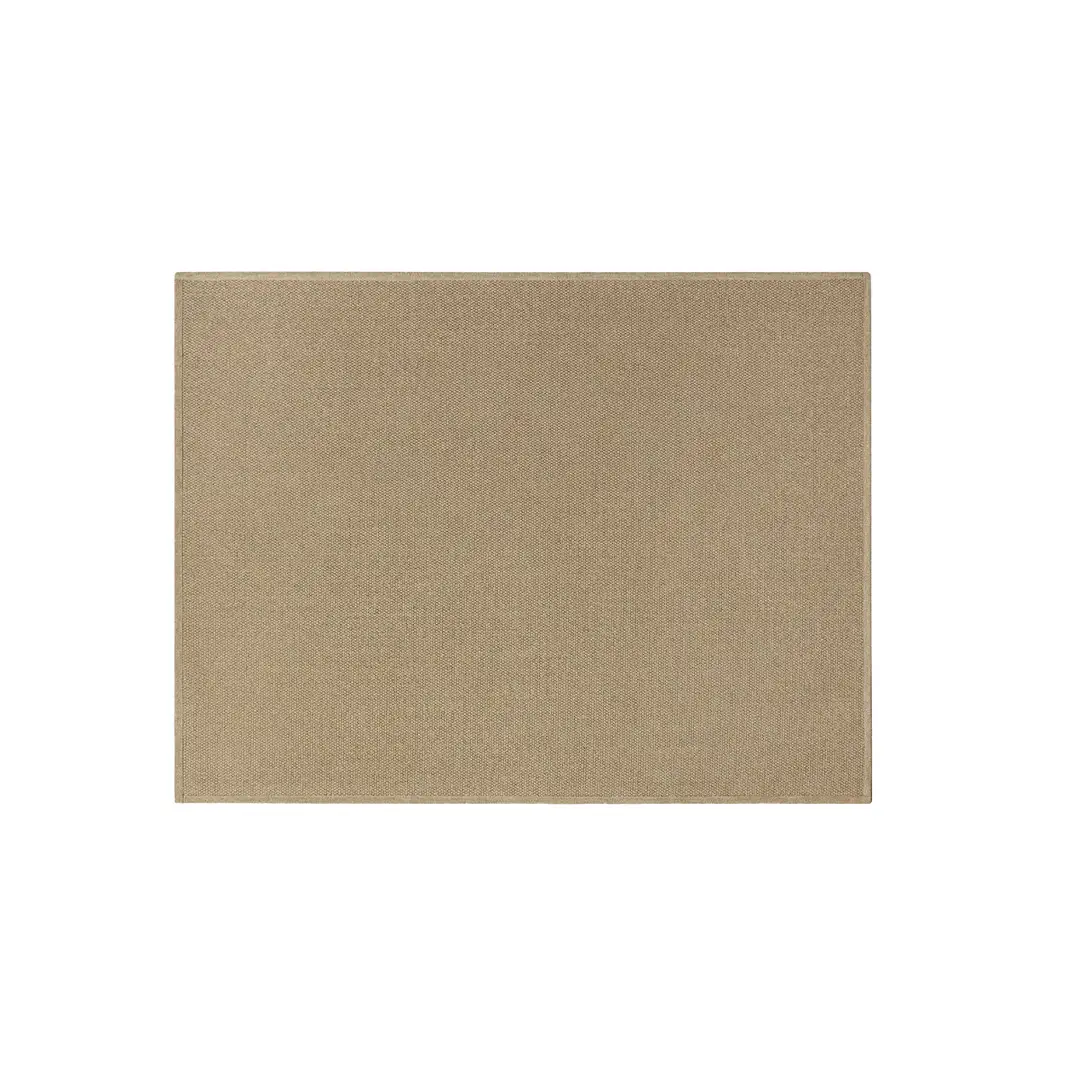 Created from recycled plastic bottles and woven on our traditional Wilton looms, it represents a classic design from our collection of outdoor recycled carpets. It has a very similar look to jute or sisal carpets but with much better performance as they are suitable for outdoor use and guarantee optimal performance in all seasons, making this carpet collection perfect for decorating terraces, patios or other outdoor areas.