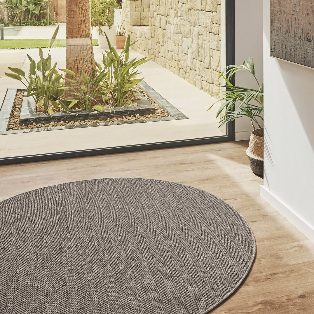 Palma is our all-purpose collection of indoor/outdoor rugs. It looks just like a jute rug but is woven from synthetic olefin fibres, which provide many advantages. This weave is water-resistant, offers protection against stains, and also has no problems of fading in sunlight.