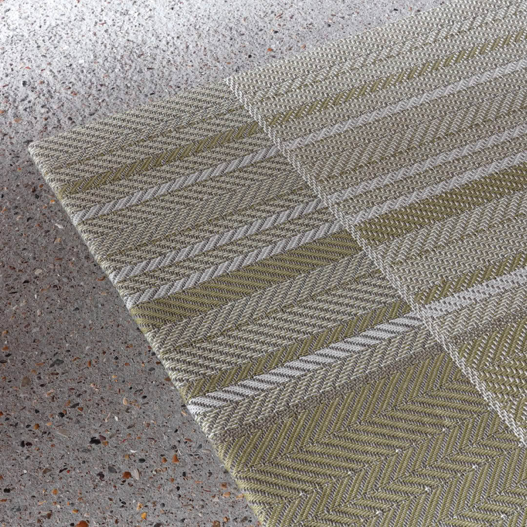 Pampelonne’s rolls are woven on a four-meter-wide loom and cut to your size. Each rug has a one-of-a-kind striped pattern. This jacquard weave is suitable for both indoors and outdoors