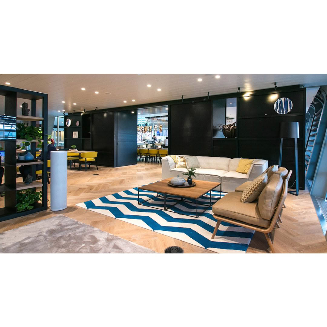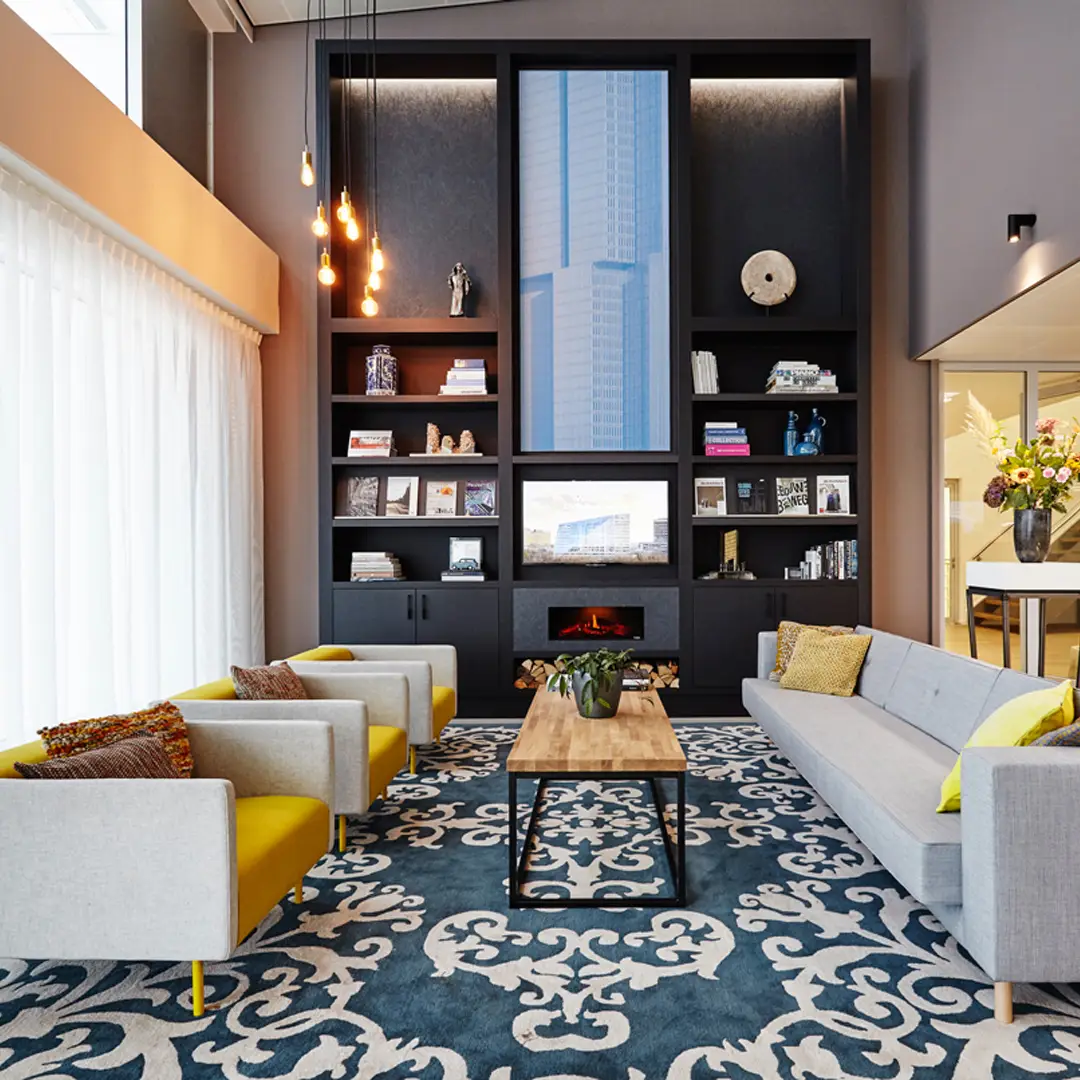 Elegant lounge with modern lighting and stylish furniture