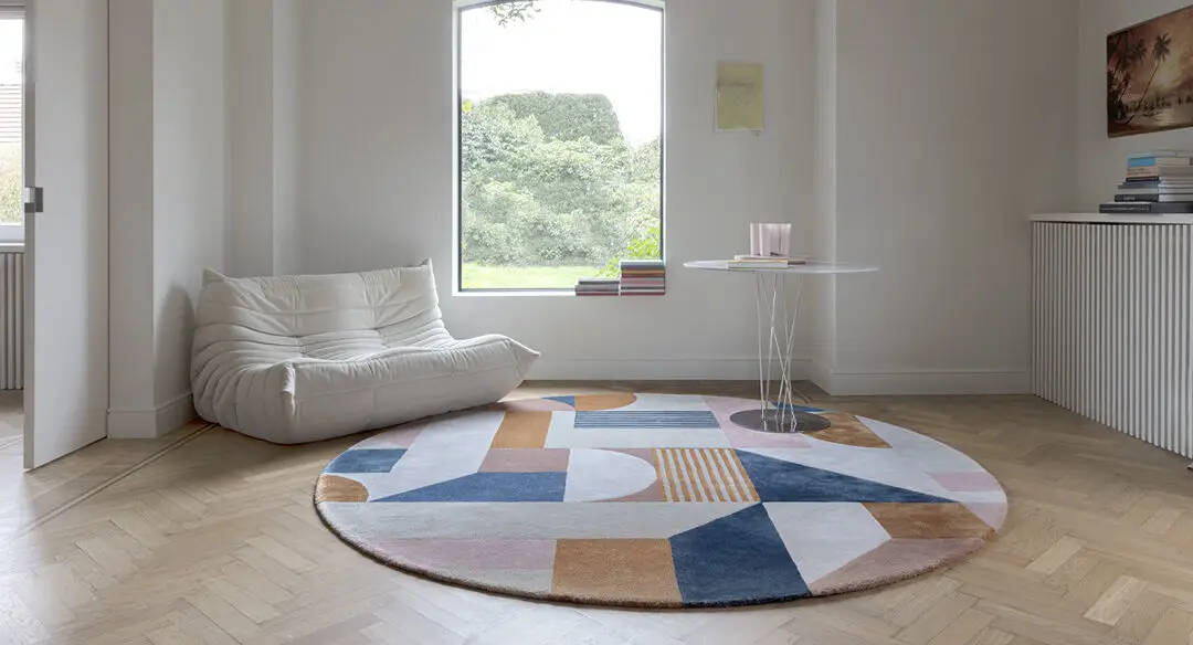 Inspired by the style of the Memphis architects, Retro Chic plays with beautiful, bright colours and a fun geometrical pattern: a design that truly takes you back in time. The rug is made out of natural fibers – 50% wool and 50% seasilk – and is available in five different colour palettes.