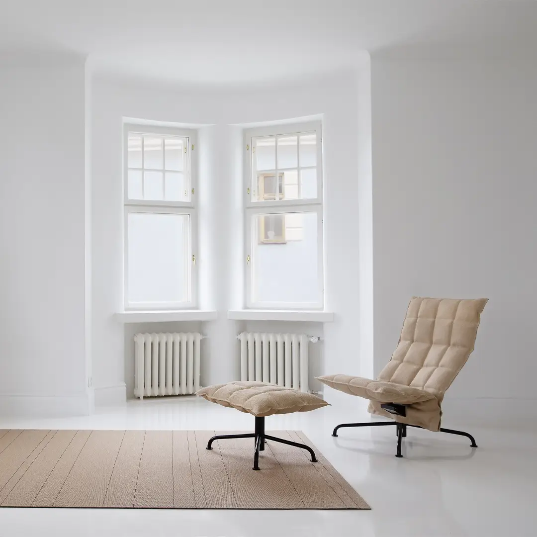 Willow paper yarn carpet was designed by the Swedish design studio Claesson Koivisto Rune, the carpet saw the light of day originally at Helsinki Design Week 2002. Year 2022 the carpet has gone through product development process in which its final touch was found from natural dye. The irregular striping is dyed using willow bark. Made of paper yarn, the carpet combines gentle tones of willow colour and the neutral base color.