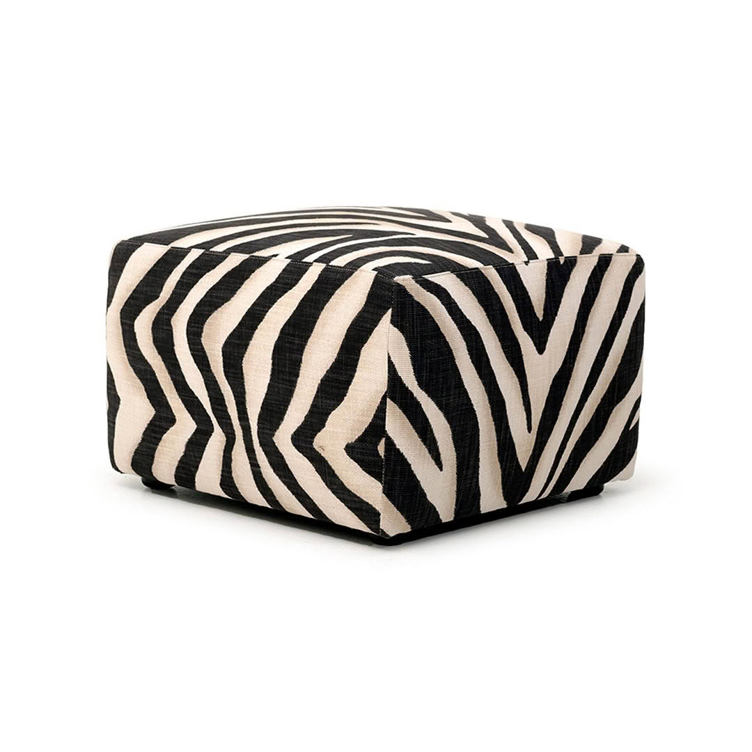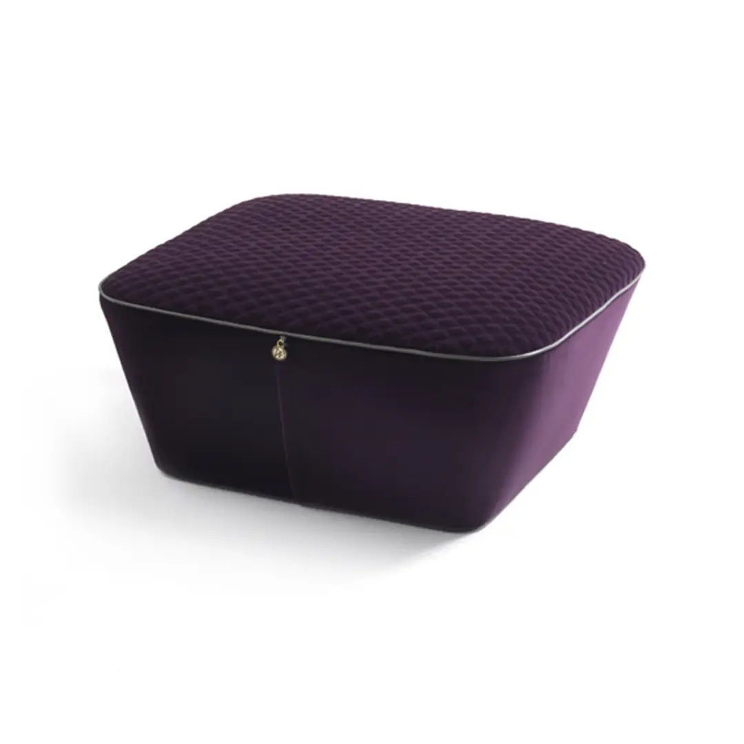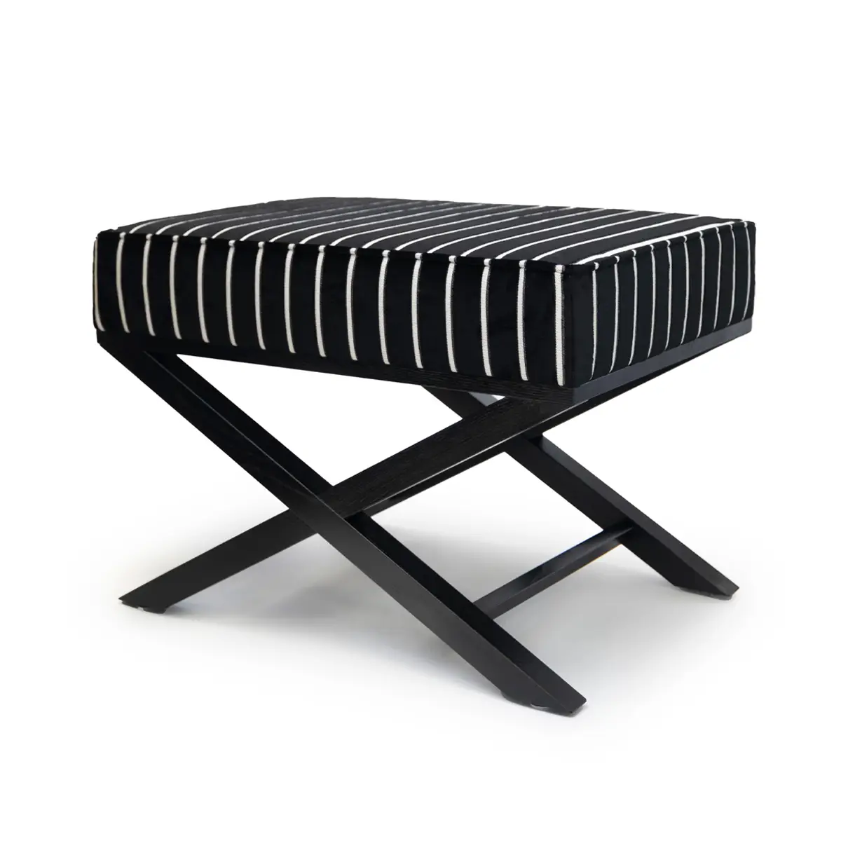 Brown leather ottoman with nailhead trimBlack velvet ottoman with brass nailhead details