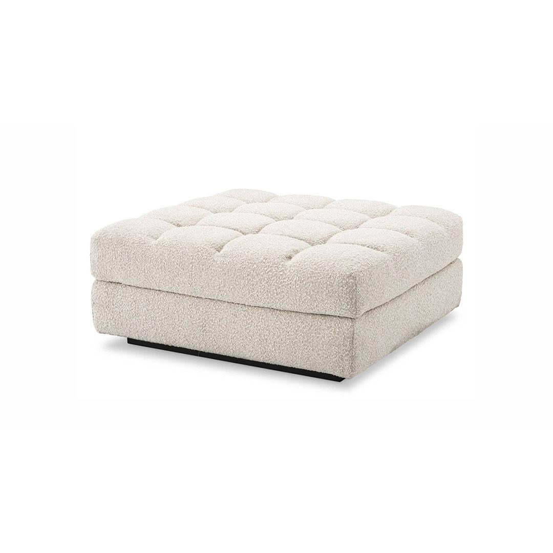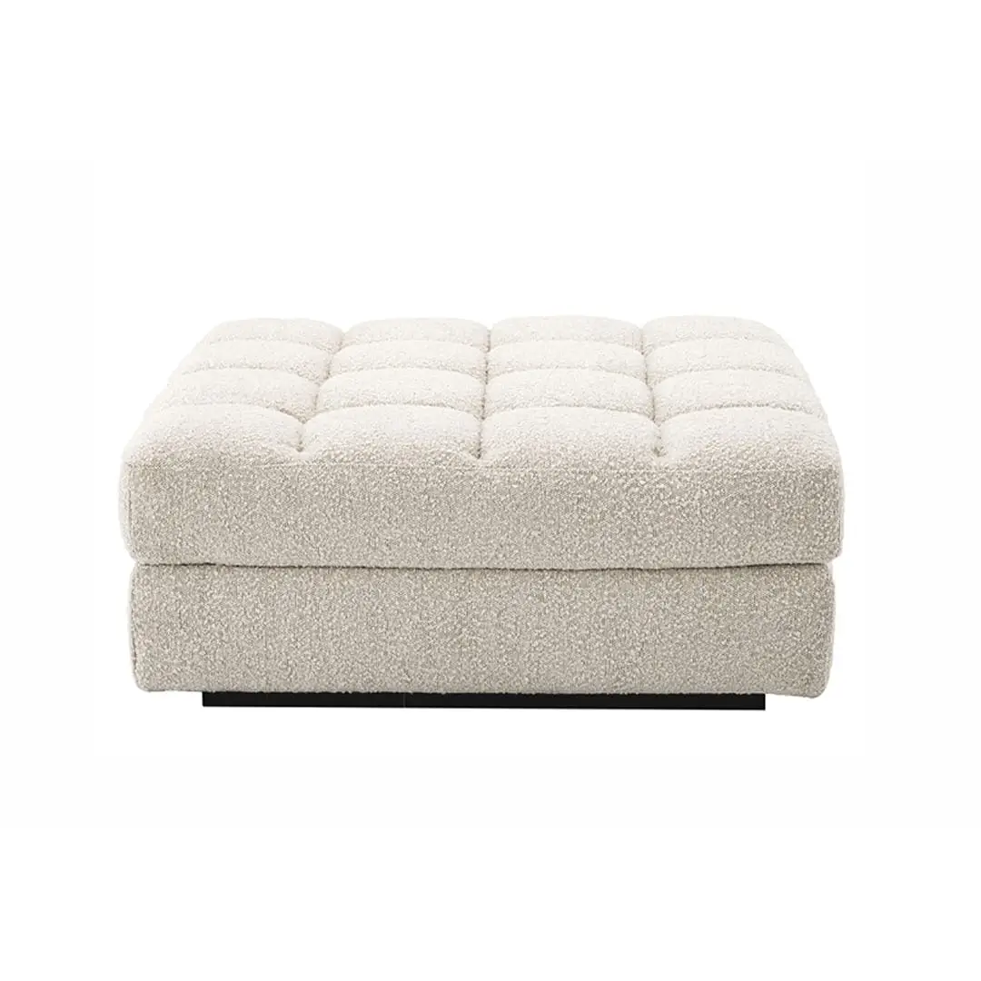 Gray tufted floor cushion isolated on white backgroundElegant urban living room with balcony view and plants